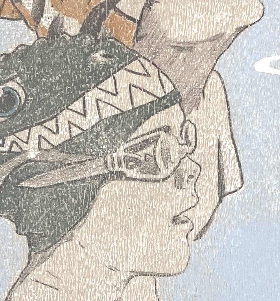 Я поймала момент чистой радости от контакта с водой, когда страх ещё не осознан, а дыхание сбивчиво от восторга. Вода бассейна - сама среда игры. Это работа о самом первом, самом лёгком дыхании в контексте воды. Здесь ещё нет задачи задержать вдох — есть восторг от того, что можно дышать, находясь в воде. Кислород здесь повсюду: он в воздухе над бассейном, в пузырях смеха, в свете, который пронизывает толщу. Это кислород радости и открытия».«Взрослые ныряльщики на других работах ищут в глубине тишину и преодоление. Эти же мальчики находят в воде шумную игру. Их шапочки — как ироничные карнавальные маски, напоминающие нам, что любое глубокое погружение, даже в себя, начинается с любопытства и готовности немного 'притвориться' — рыбой, или русалкой, или чем-то большим, чем ты есть на суше. Смешные шапочки-рыбки — это не экипировка для рекордов, а первый маскарад, превращающий ребёнка в обитателя водного мира.
