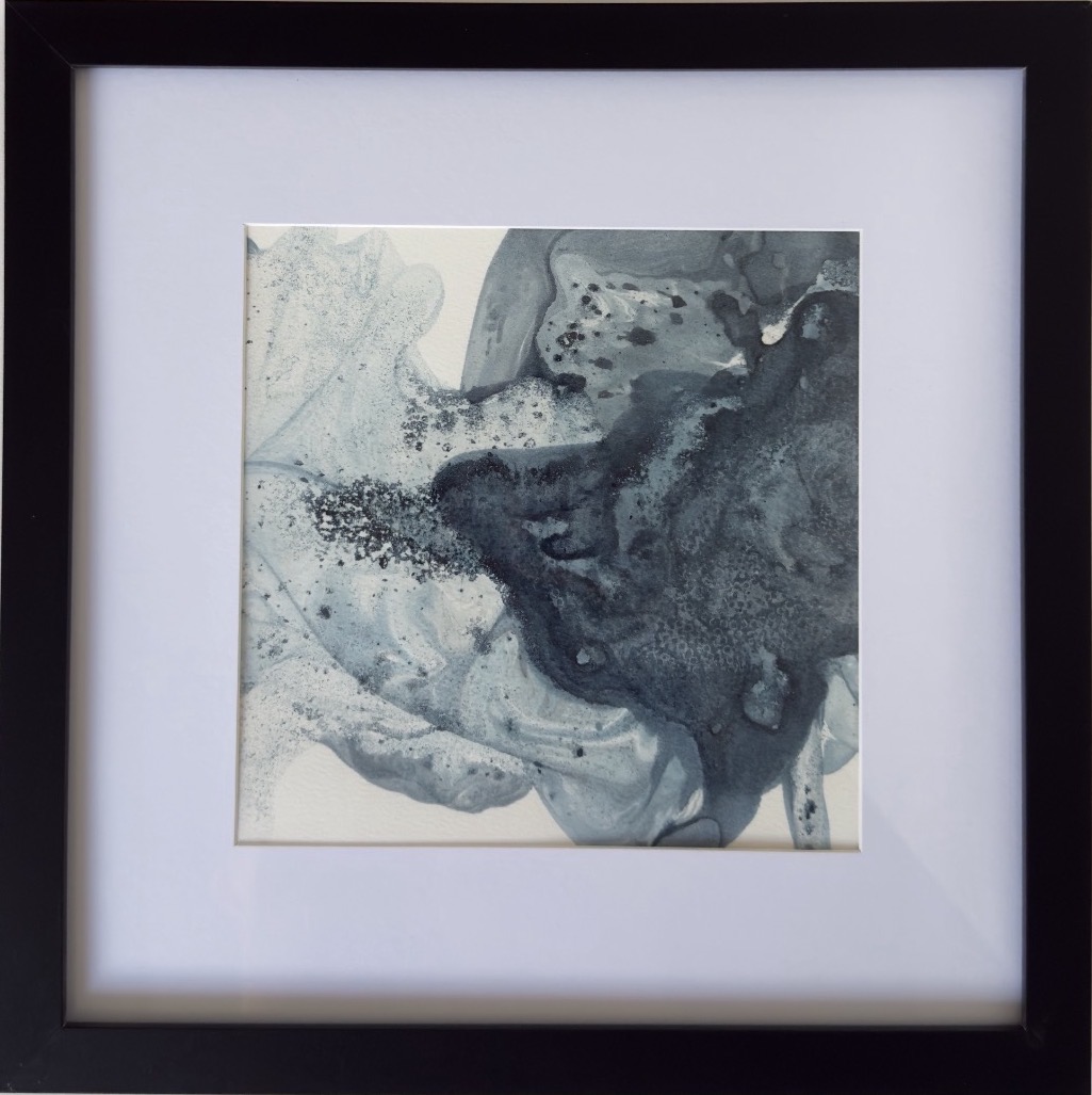 Серия: Следы эфира Работа выполнена маслом на бумаге. Полупрозрачные формы будто проявляются из невидимого, сохраняя след движения, вибрации, дыхания. Оформление подчёркивает деликатность образа: паспарту ,чёрная рама, стекло. — Размер работы: 21 *21см — Размер в оформлении: 33×33 см
