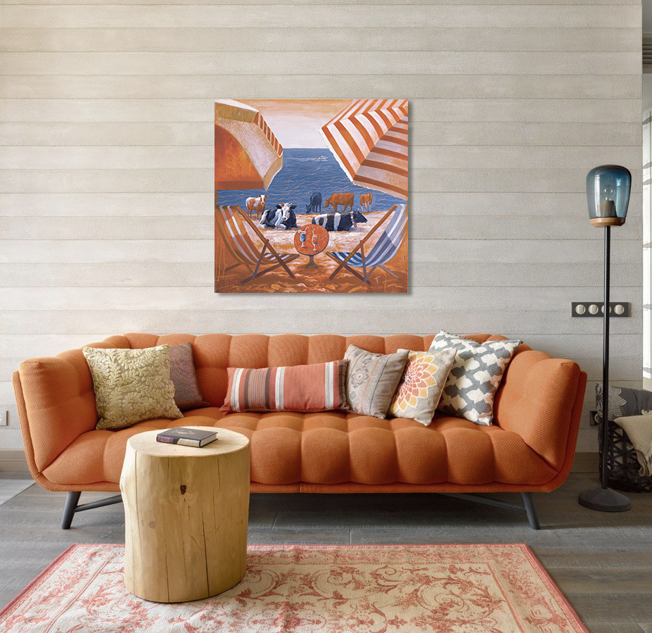 Картина представляет собой ироничный, даже саркастический взгляд на пляжную идиллию. Передает атмосферу расслабленного отдыха, типичного для курортных пейзажей.