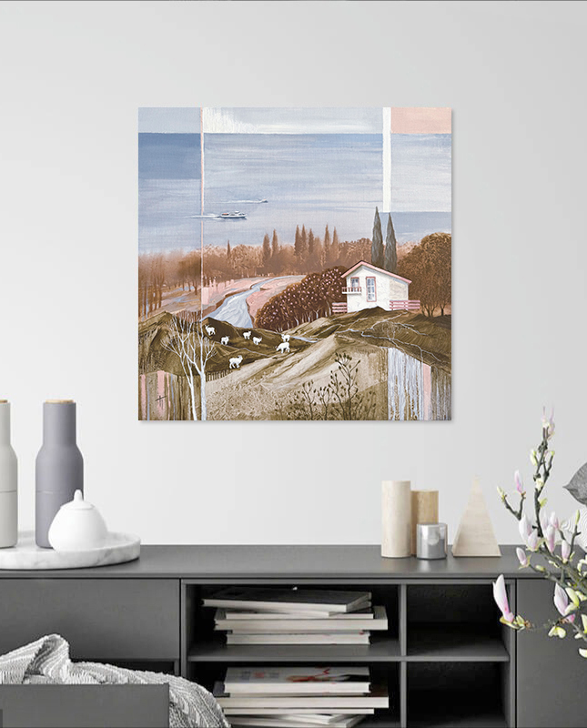 Картина посвящена моим мечтам о собственном доме в Сочи для нашей семьи. Небольшой уютный домик вдали от городской суеты. Фруктовые деревья с поспевшими плодами. Пасущиеся неподалеку козочки. Тишина вокруг и слышно только пение птиц. Дом с видом на горы или на море, а может быть и то и другое. Ведь в Сочи такое возможно. С одной стороны мы видим горы, а с противоположной - море.
