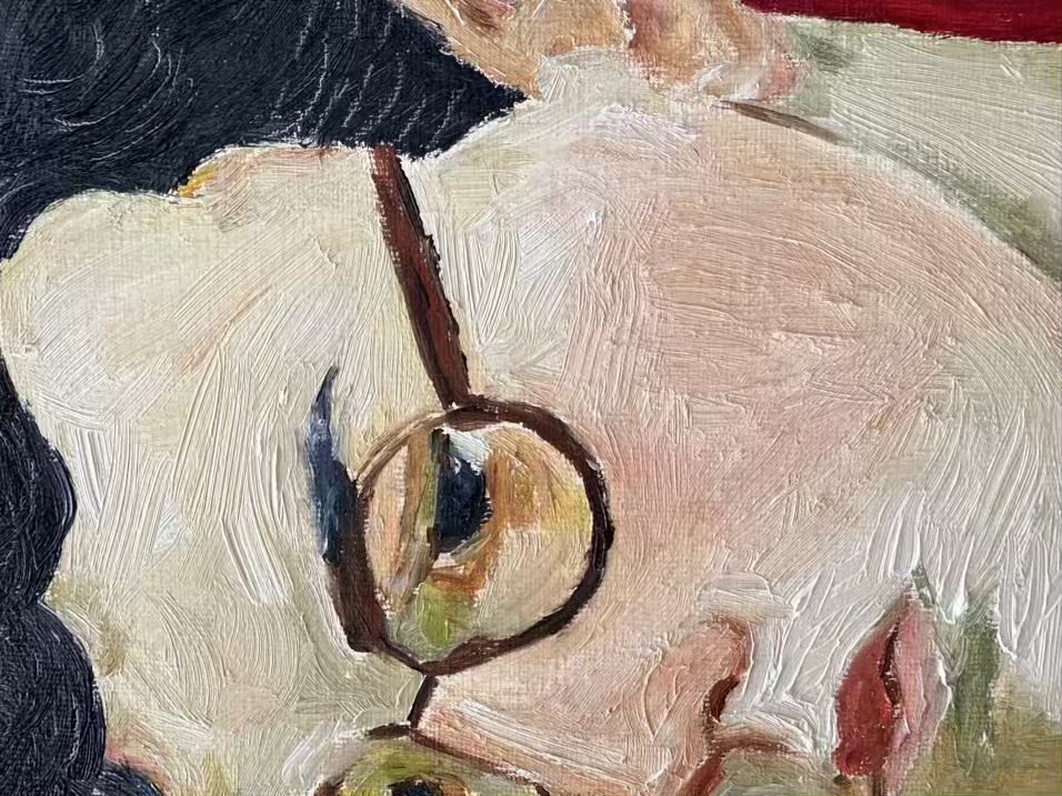 На картине изображён красивый молодой человек в элегантном полосатом костюме — стильном, строгом и в то же время мягко подчёркивающем его индивидуальность. Он выглядит собранным, спокойным, но в нём чувствуется движение мысли, внутренняя жизнь, которая делает образ живым и притягательным. Картина передаёт мгновение тишины, когда человек остаётся наедине со своим умом — и в этом есть особенная красота.