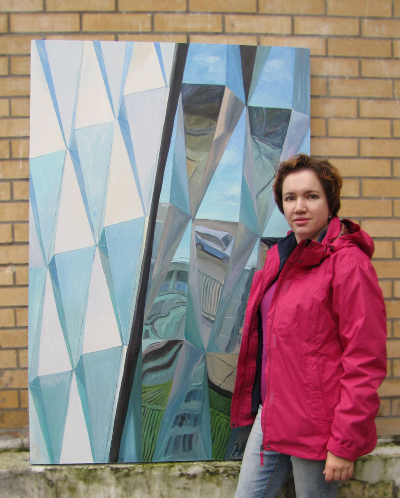 Эта картина погружает зрителя в захватывающий мир современной архитектуры и игры светотеней. Изображённое отражение мегаполиса в зеркальной поверхности офисных зданий создаёт уникальную оптическую иллюзию, преображающую привычный городской пейзаж. Бирюзовые стеклянные грани создают ощущение лёгкости и воздушности, подчёркивая динамичность городского ритма.