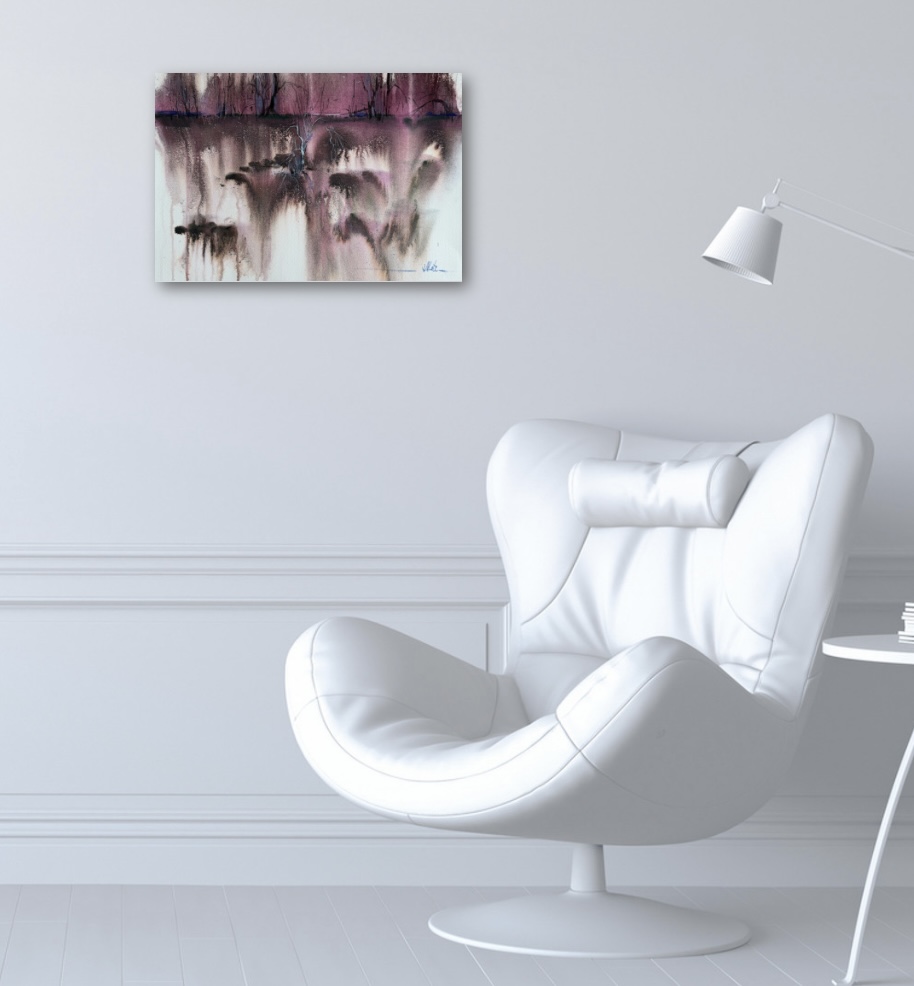 Сказочный лес — работа из серии «Грануляция», в которой через возможности акварели исследуются природные состояния, память пространства и внутренние переживания. Вертикальные потоки цвета и размытые границы форм создают ощущение отражения, будто пейзаж существует одновременно в реальности и в воспоминании. Образ одинокого дерева в центре композиции усиливает чувство внутренней тишины и скрытого напряжения.